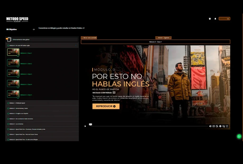 Plataforma inteligente de inmersión lingüística, desarrollada exclusivamente por Método Speed Academy.